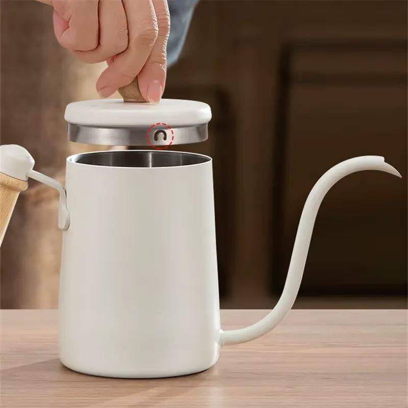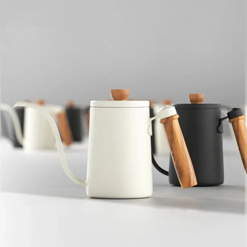 Bule Inox Chaleira Gooseneck 600ml com Cabo de Madeira para Café e Chá Casa Splendida