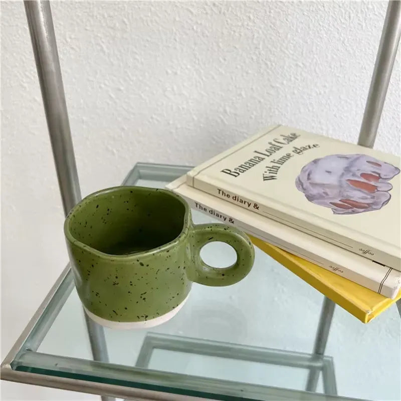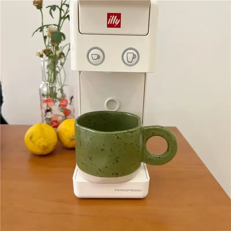 Caneca verde moderna 250ml com alça circular e acabamento pontilhado