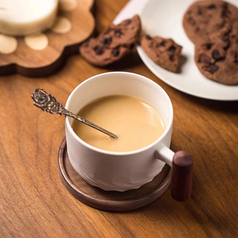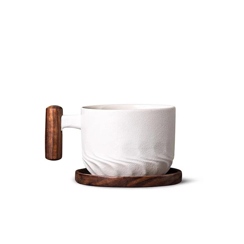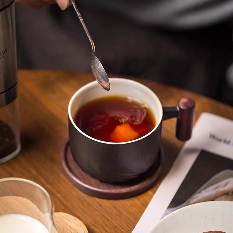 Experimente o toque artesanal das canecas retrô em cerâmica – disponíveis nas cores Preto e Branco, com alça de madeira que traz charme e conforto ao seu café.