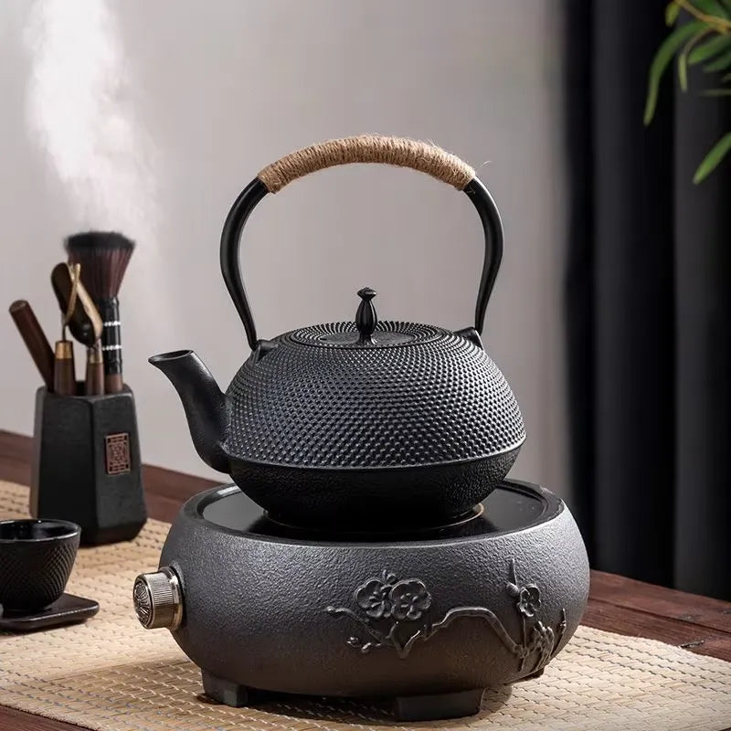 Inspirada nos tradicionais rituais japoneses, a Chaleira de Ferro Estilo Japonês Preta Casa Splendida é uma verdadeira obra de arte funcional. Seu corpo em ferro fundido de alta qualidade garante aquecimento uniforme e prolongado, tornando cada preparo mais eficiente e prazeroso. A textura externa refinada e a alça com acabamento em corda de cânhamo resgatam a estética clássica do Oriente, trazendo um ar de serenidade e autenticidade para a sua casa.