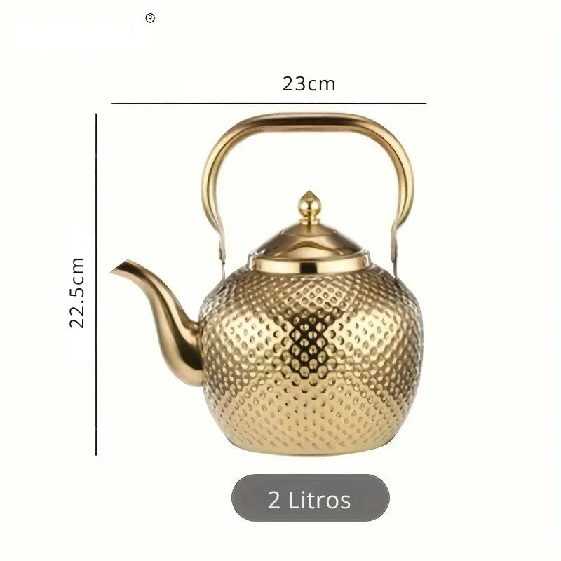 Chaleira Dourada até 2 Litros Inox com Filtro Casa Splendida
