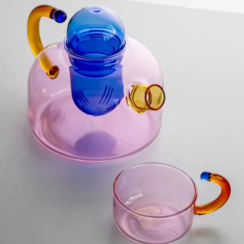Chaleira e Conjunto de Vidro Rosa Casa Splendida