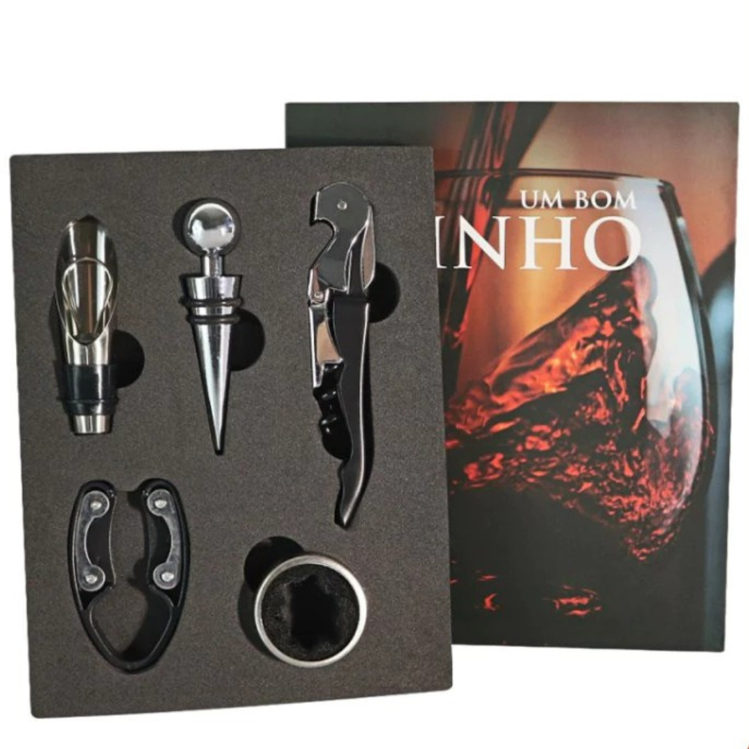 Com acabamento refinado e materiais de alta qualidade, este kit é uma excelente opção tanto para uso pessoal quanto para presentear. Cada peça foi pensada para tornar o ritual do vinho mais prático, higiênico e estiloso.