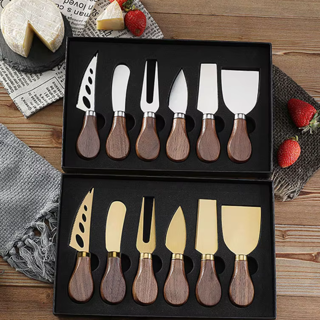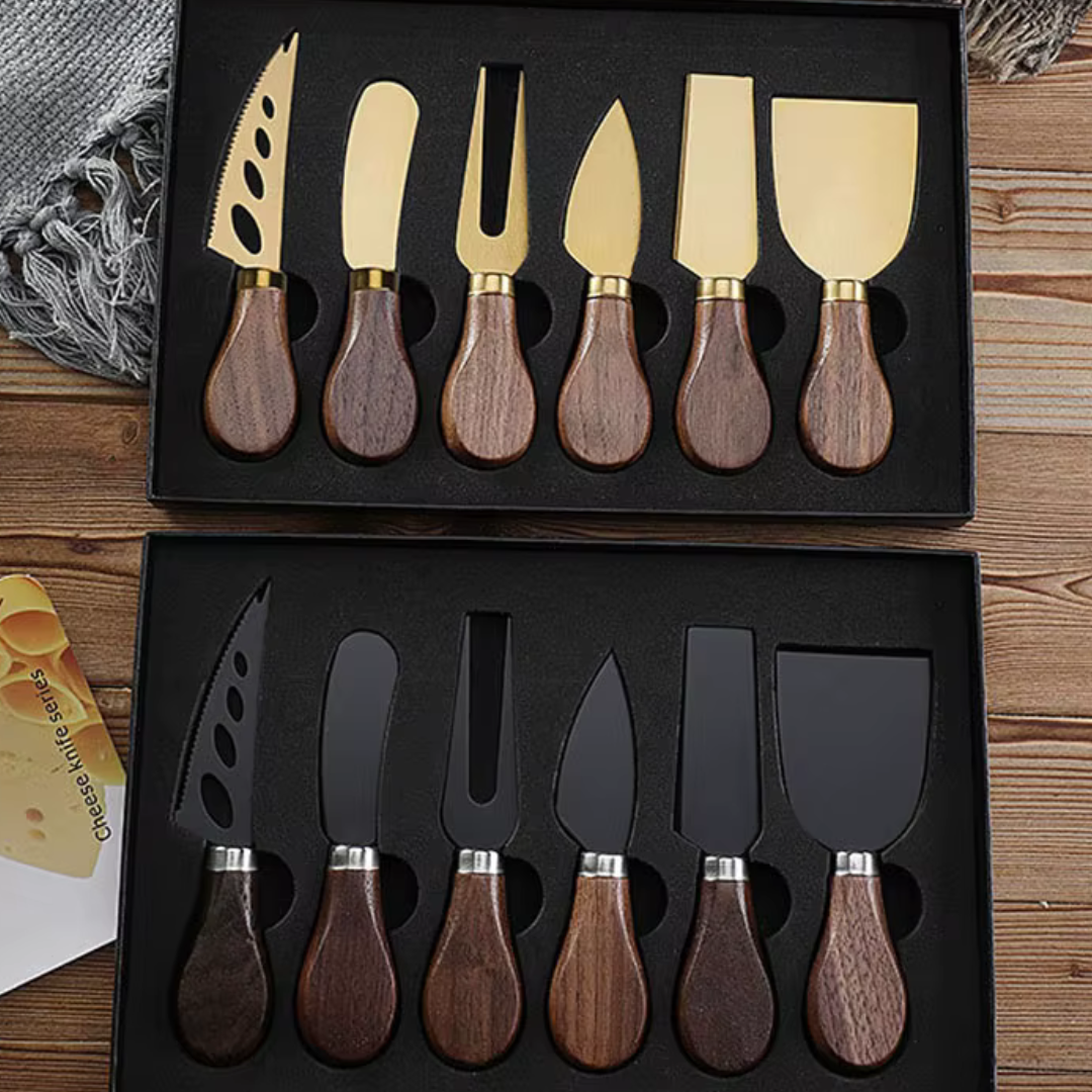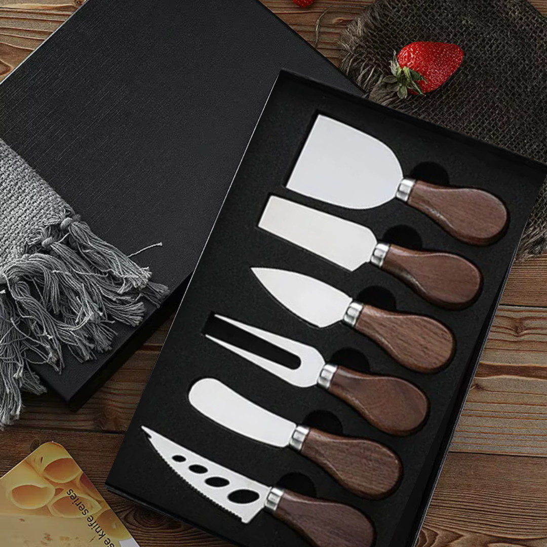 Conjunto Premium de Facas para Queijo – 6 Peças com Estojo