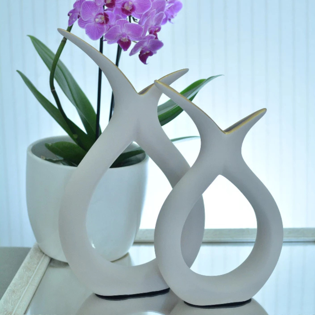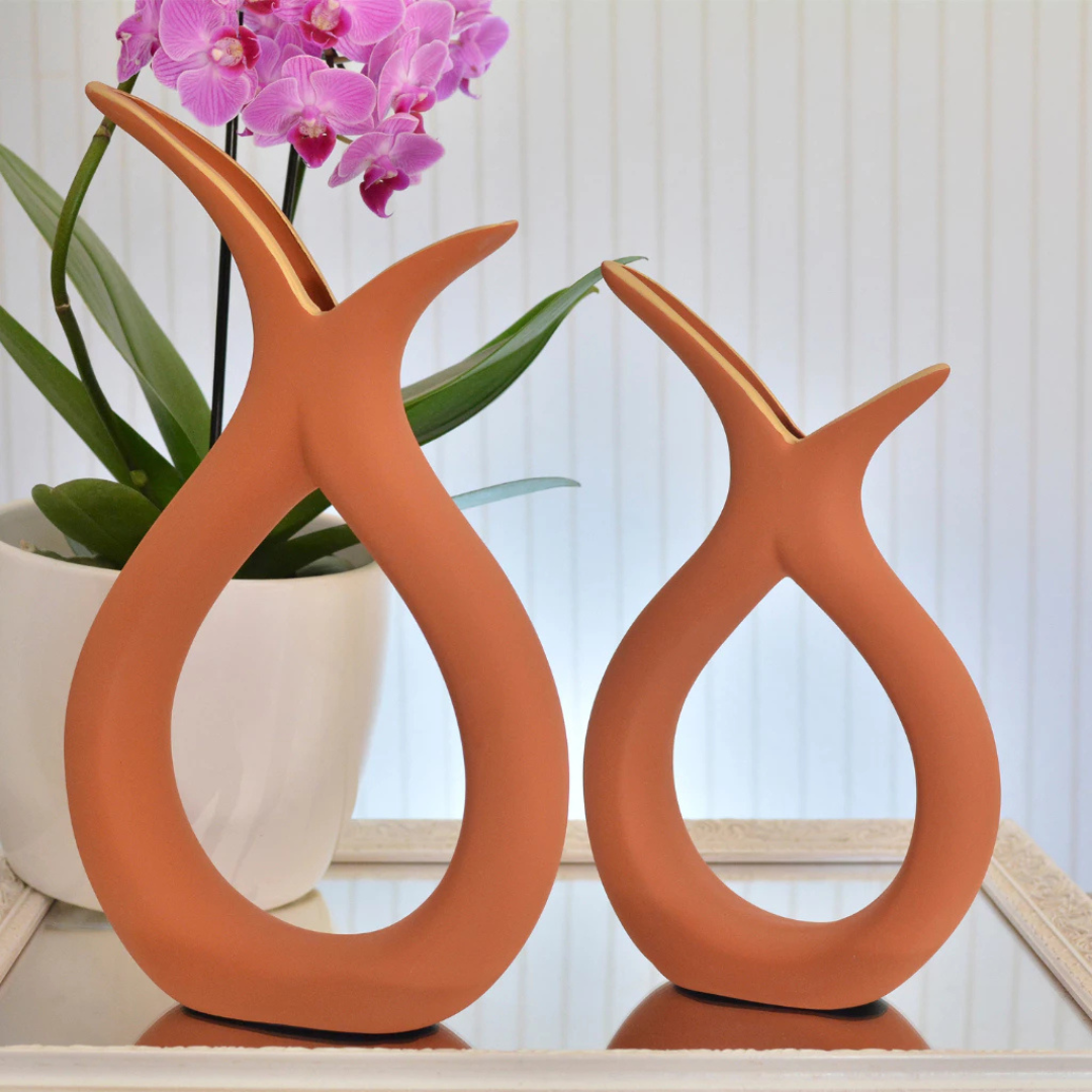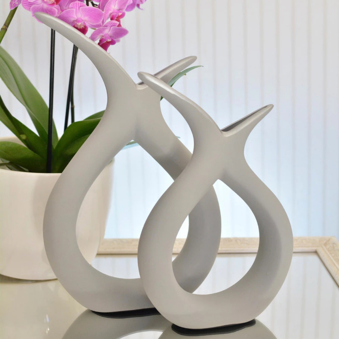 Dupla de Vasos Decorativos em Cerâmica com Design Curvo Casa Splendida