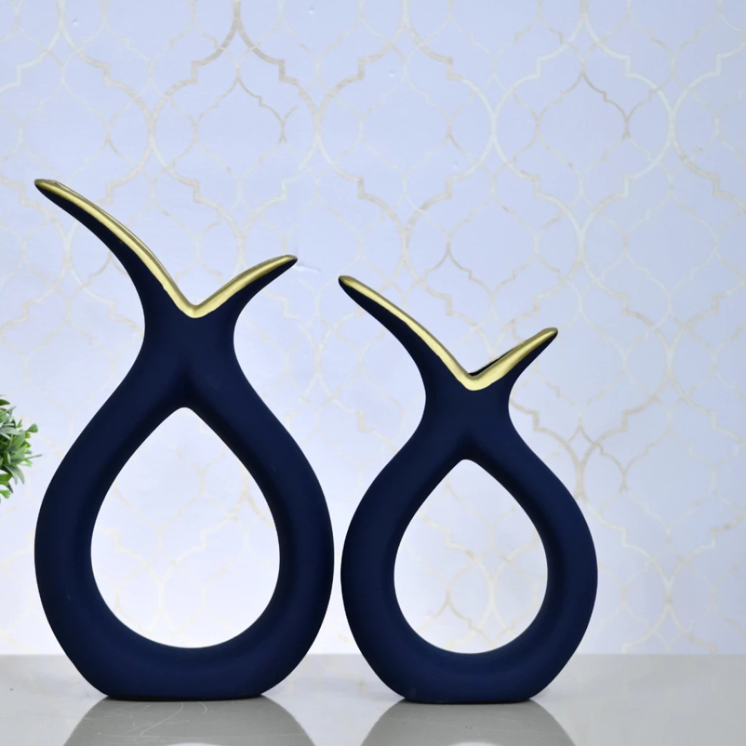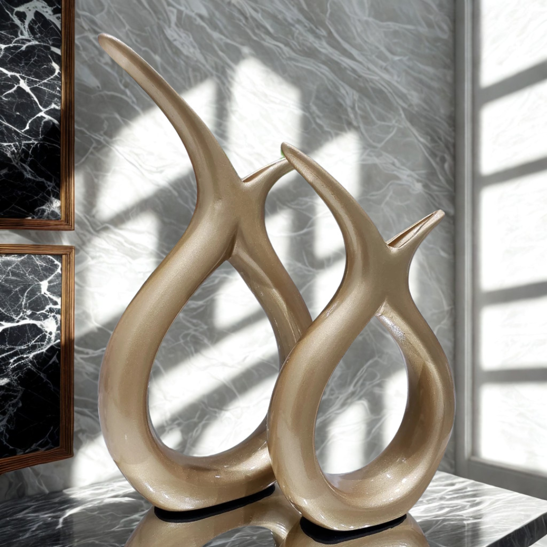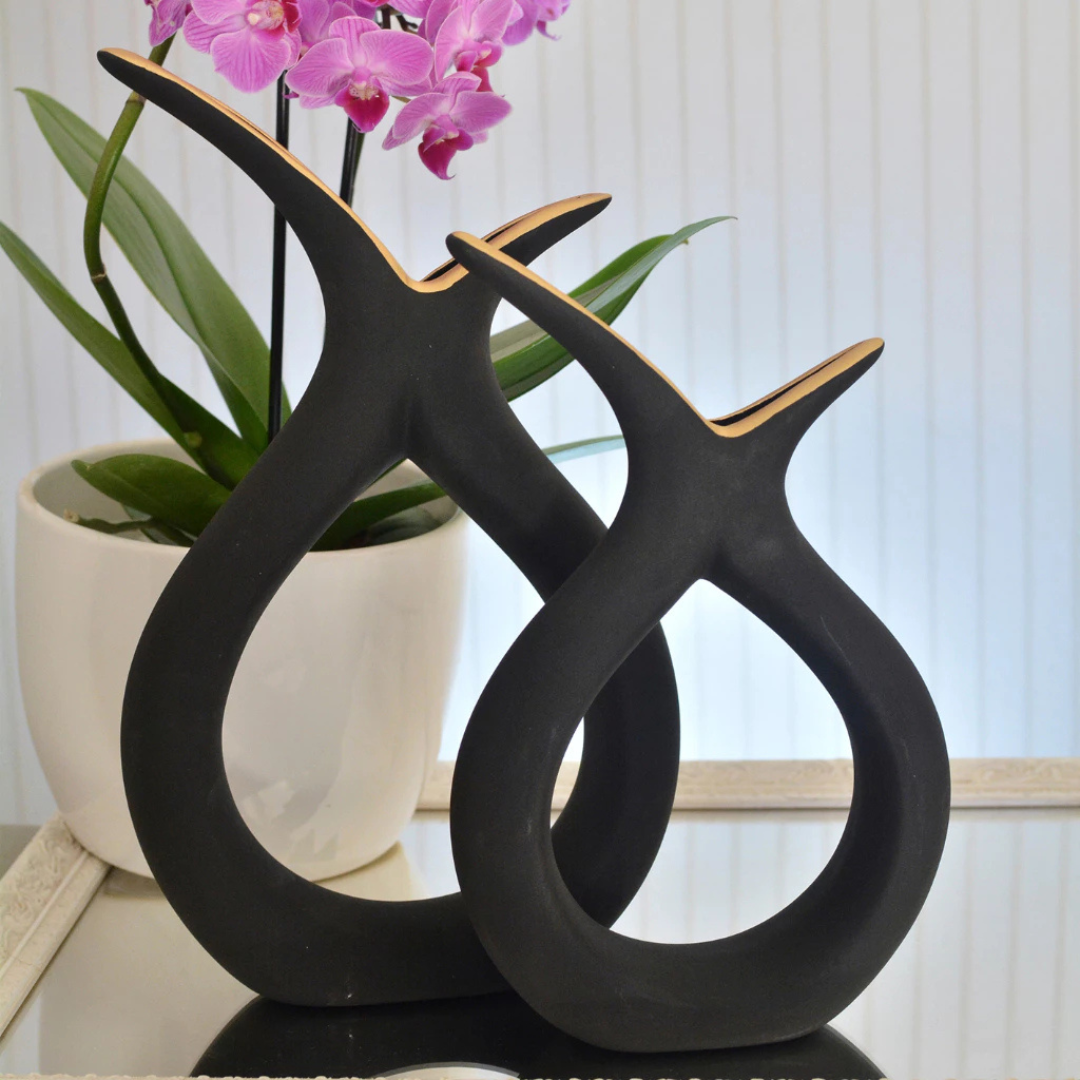 Dupla de Vasos Decorativos em Cerâmica com Design Curvo Casa Splendida