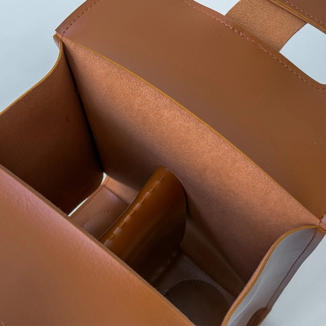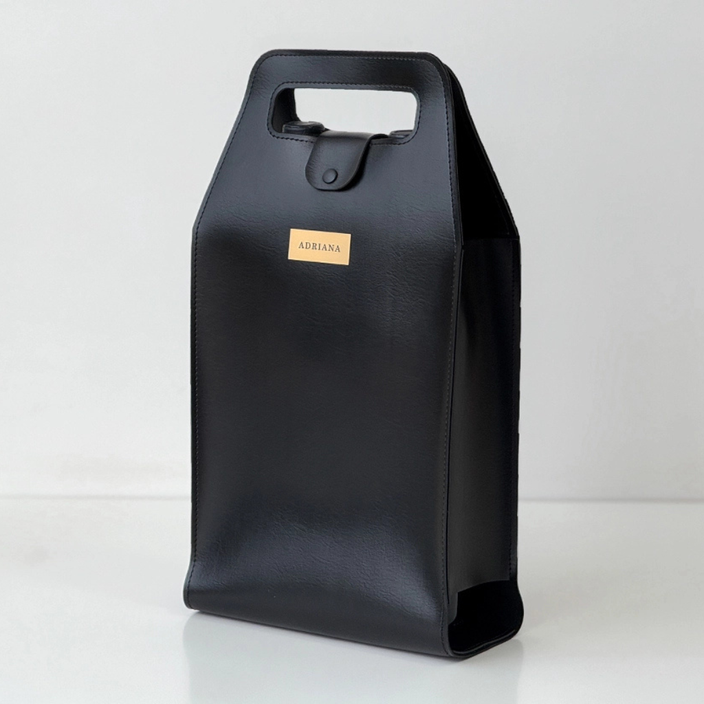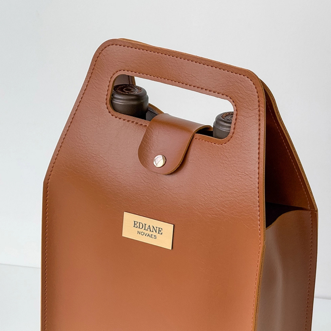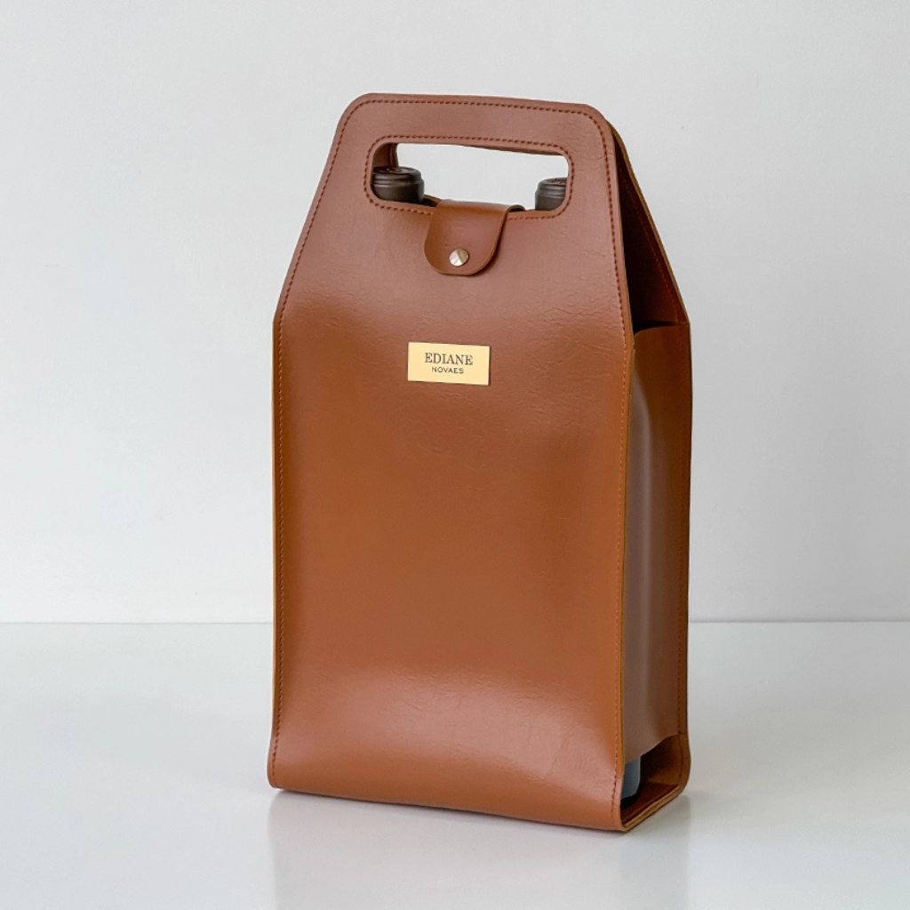 Fabricado em couro sintético de alta qualidade, esse estojo comporta com segurança duas garrafas de vinho ou espumante, protegendo e valorizando o conteúdo. O fechamento em botão é prático e garante estabilidade no transporte.