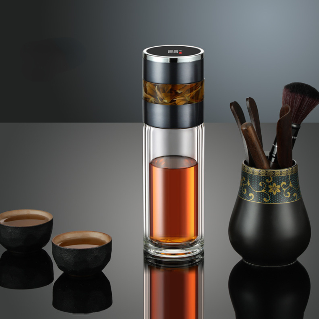 Descubra o Copo Térmico com Display Digital e Infusor de Chá. Praticidade e elegância em aço inoxidável ou vidro. Mantenha seu chá na temperatura ideal por horas.