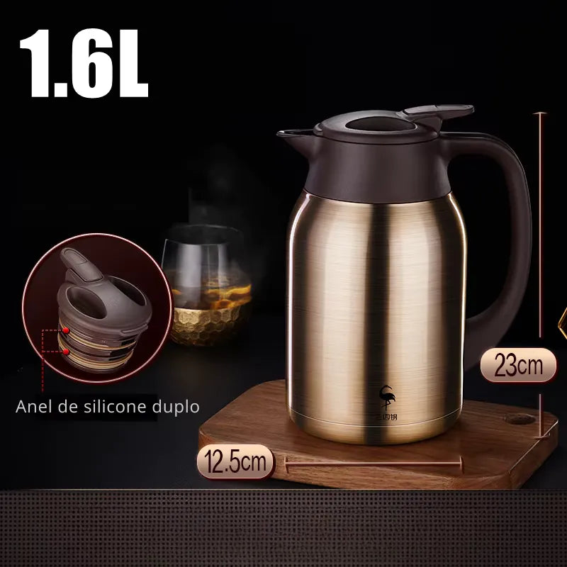 Da pausa para o café até eventos maiores, a Garrafa Térmica Dourada Casa Splendida oferece desempenho térmico superior com um visual que impressiona. Com opções de 1L, 1.6L, 2L e 2.5L, é a escolha ideal para quem quer sofisticação sem abrir mão da funcionalidade.