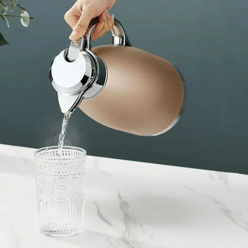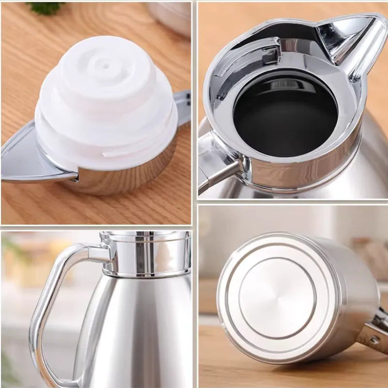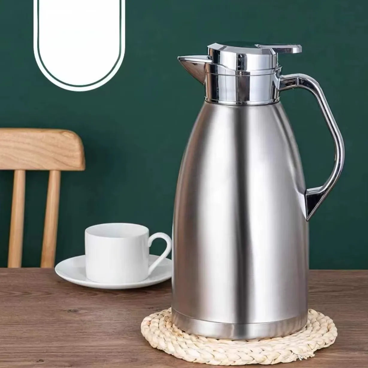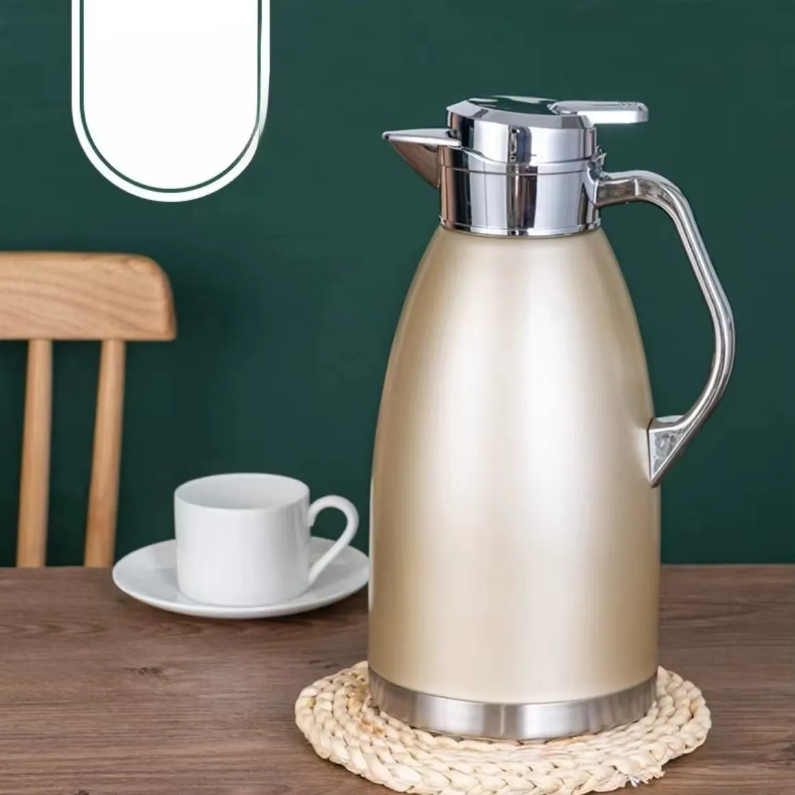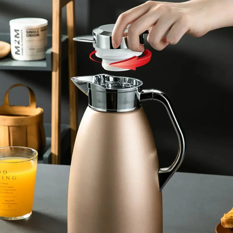 Seu formato robusto e acabamento refinado harmonizam perfeitamente com diferentes ambientes — da cozinha ao escritório. A tampa com botão dosador evita respingos, facilita o serviço com uma só mão e garante vedação segura. Já a alça ergonômica proporciona conforto e segurança ao servir, mesmo com líquidos quentes.