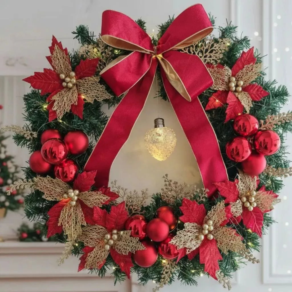Não é apenas um detalhe decorativo: é o cartão de visitas da sua casa na época mais especial do ano. Perfeita para portas de entrada, halls, recepções, áreas sociais e espaços onde o Natal merece ser visto de longe.