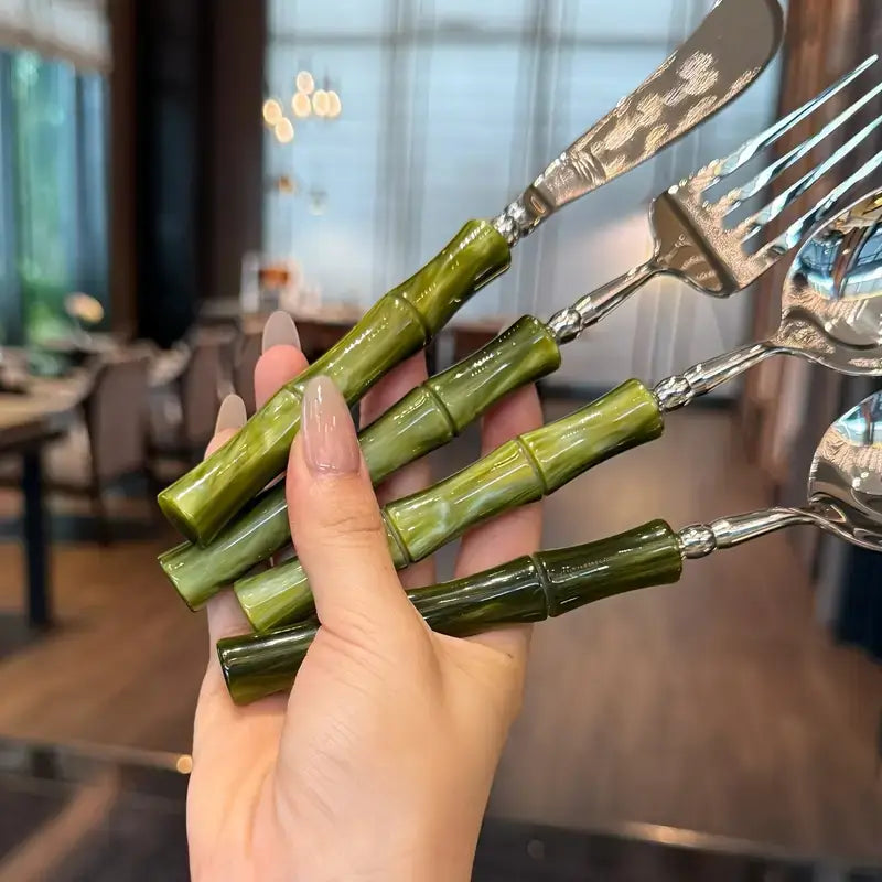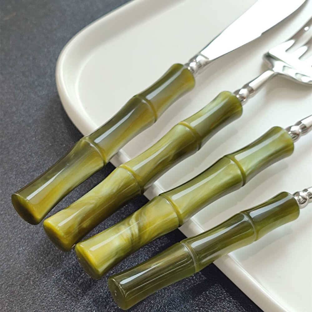 Jogo de Talheres Estilo Bambu Inox 304 Luxo Premium 16 ou 24 Peças