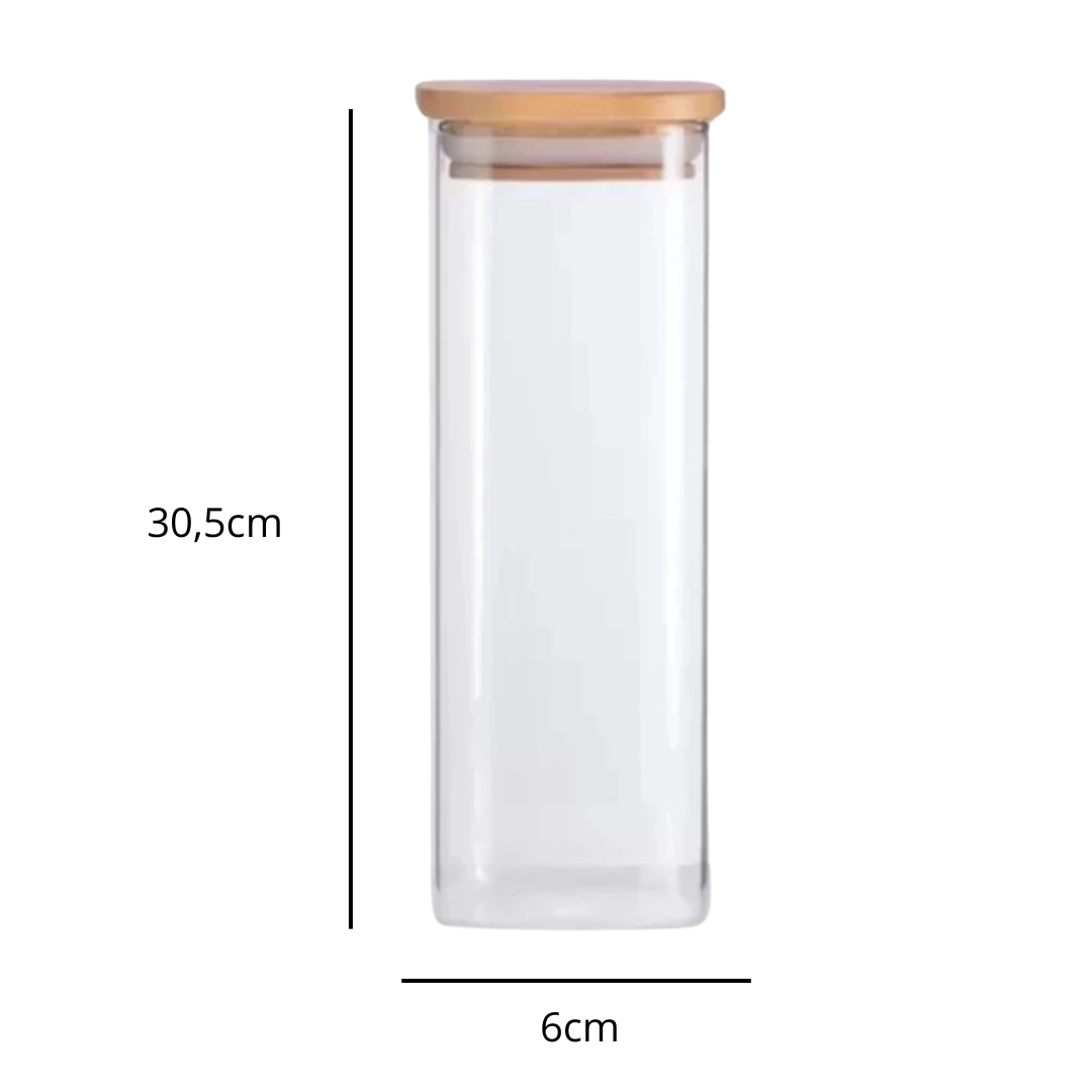 - 3 potes de vidro quadrado com tampa de bambu (1L cada)