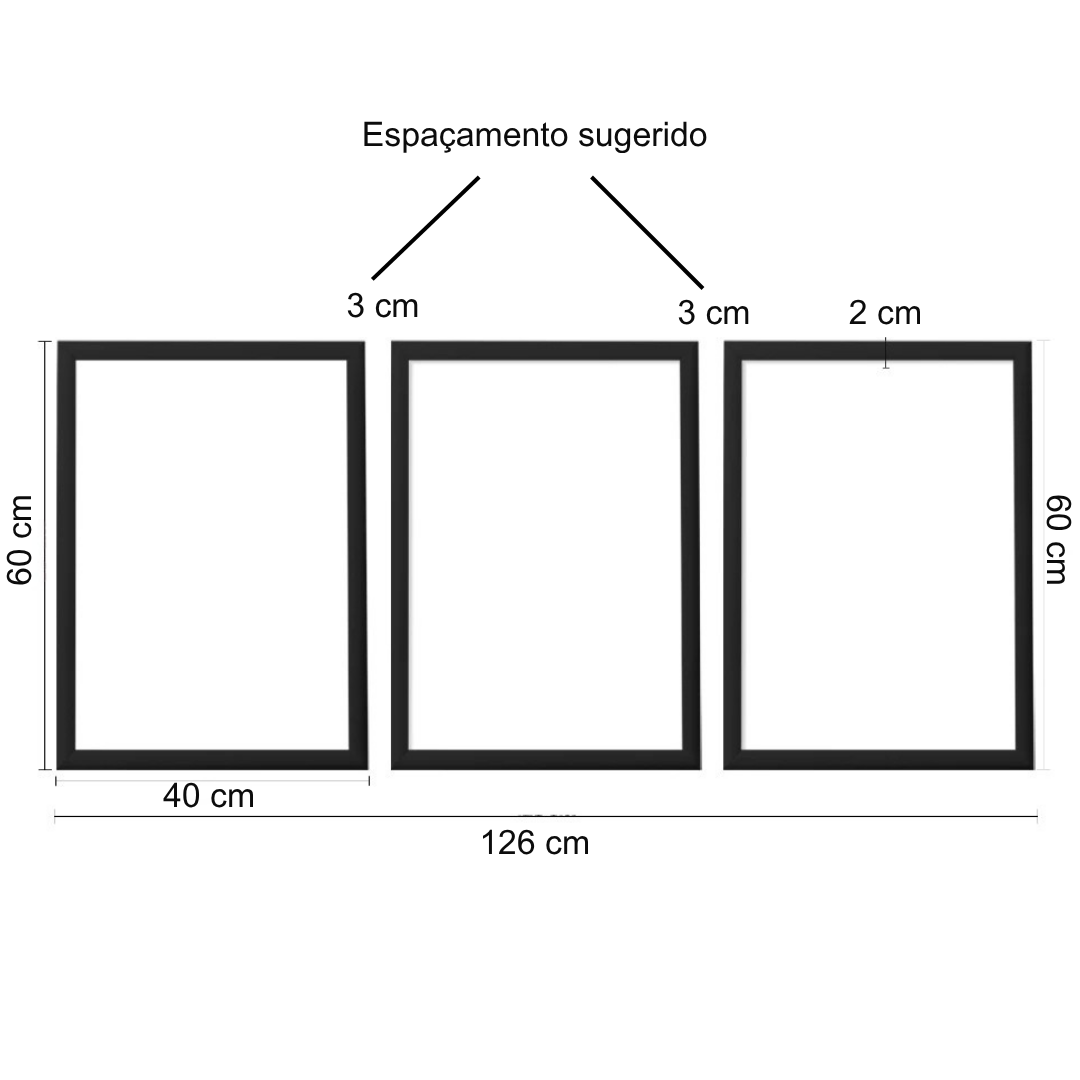 - Dimensões externas de cada quadro: 44 cm de largura x 63 cm de altura