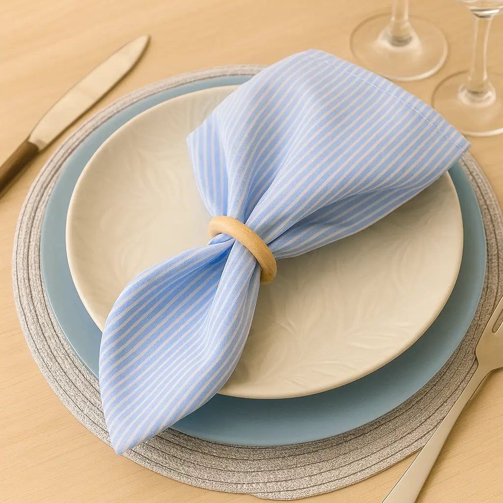 Além de valorizar a apresentação, o anel mantém o guardanapo bem acomodado, ajudando na organização da mesa e na harmonia entre louças, talheres e tecidos.