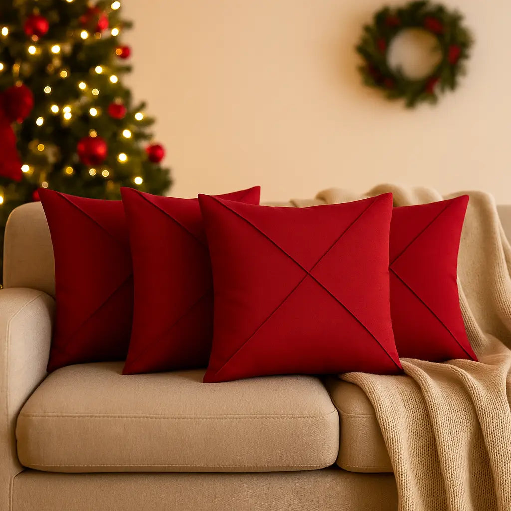 Combine o vermelho para calor e celebração, o verde para equilíbrio e o conjunto vermelho + verde para um visual clássico-chique. Em segundos, sua sala ganha presença de festa — sem perder a leveza.