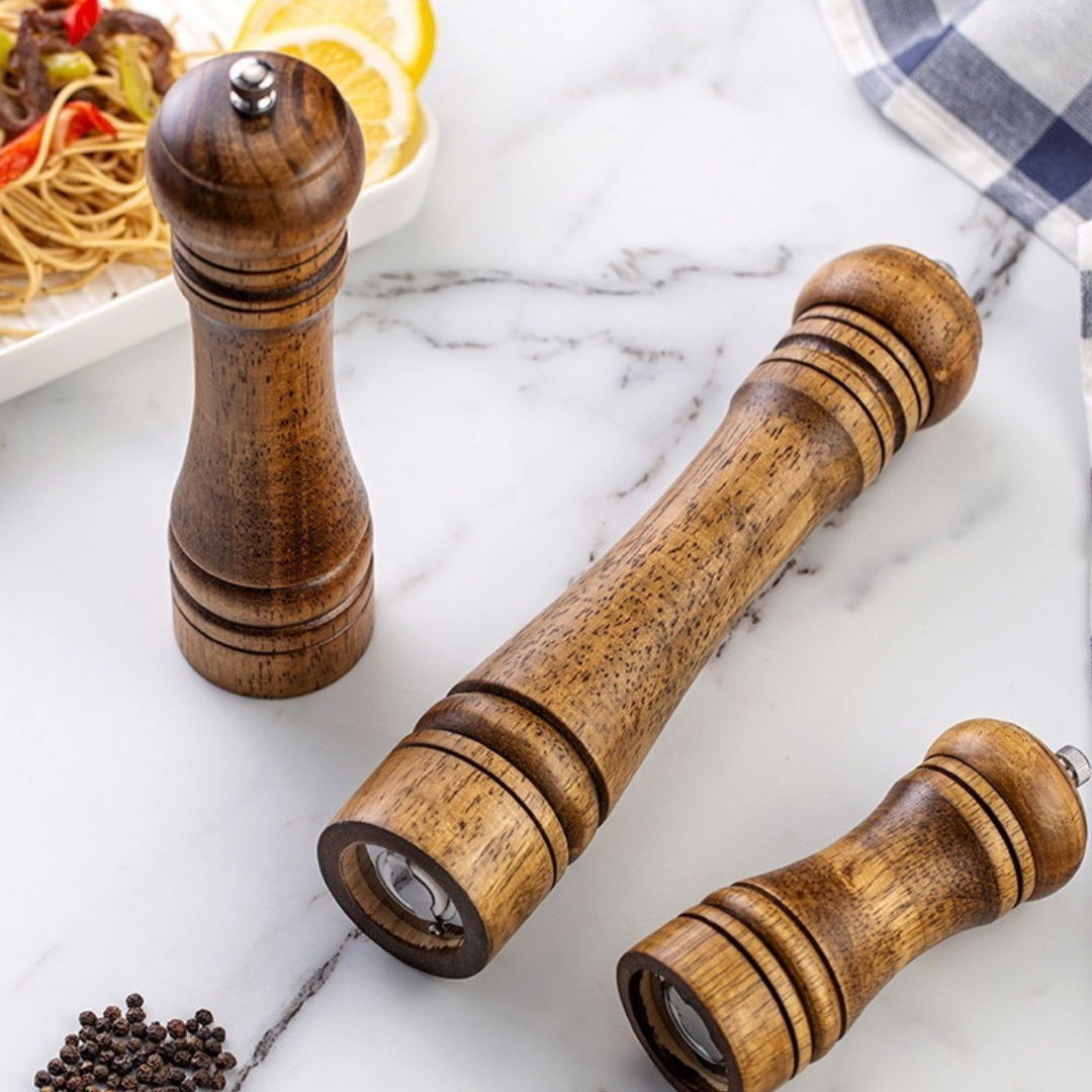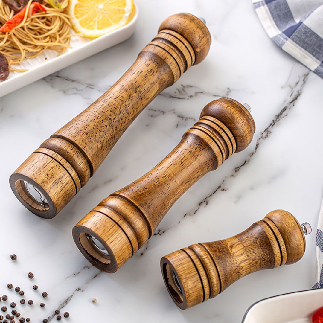 Moedor de pimenta manual em madeira de carvalho natural – 5, 8 ou 10 polegadas