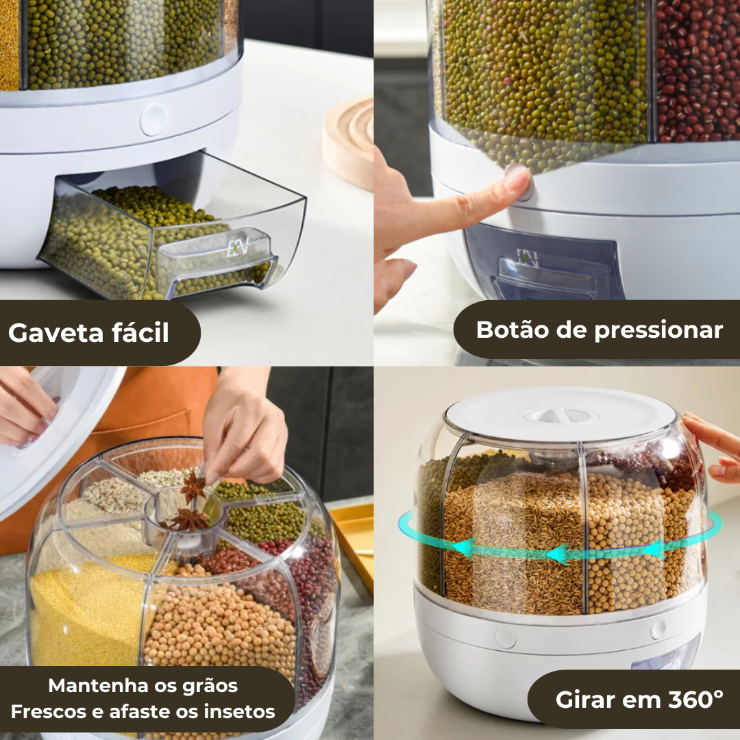 🔹 Compartimentos Inteligentes: 6 nichos individuais, permitindo armazenar diversos tipos de grãos, cereais e alimentos secos.