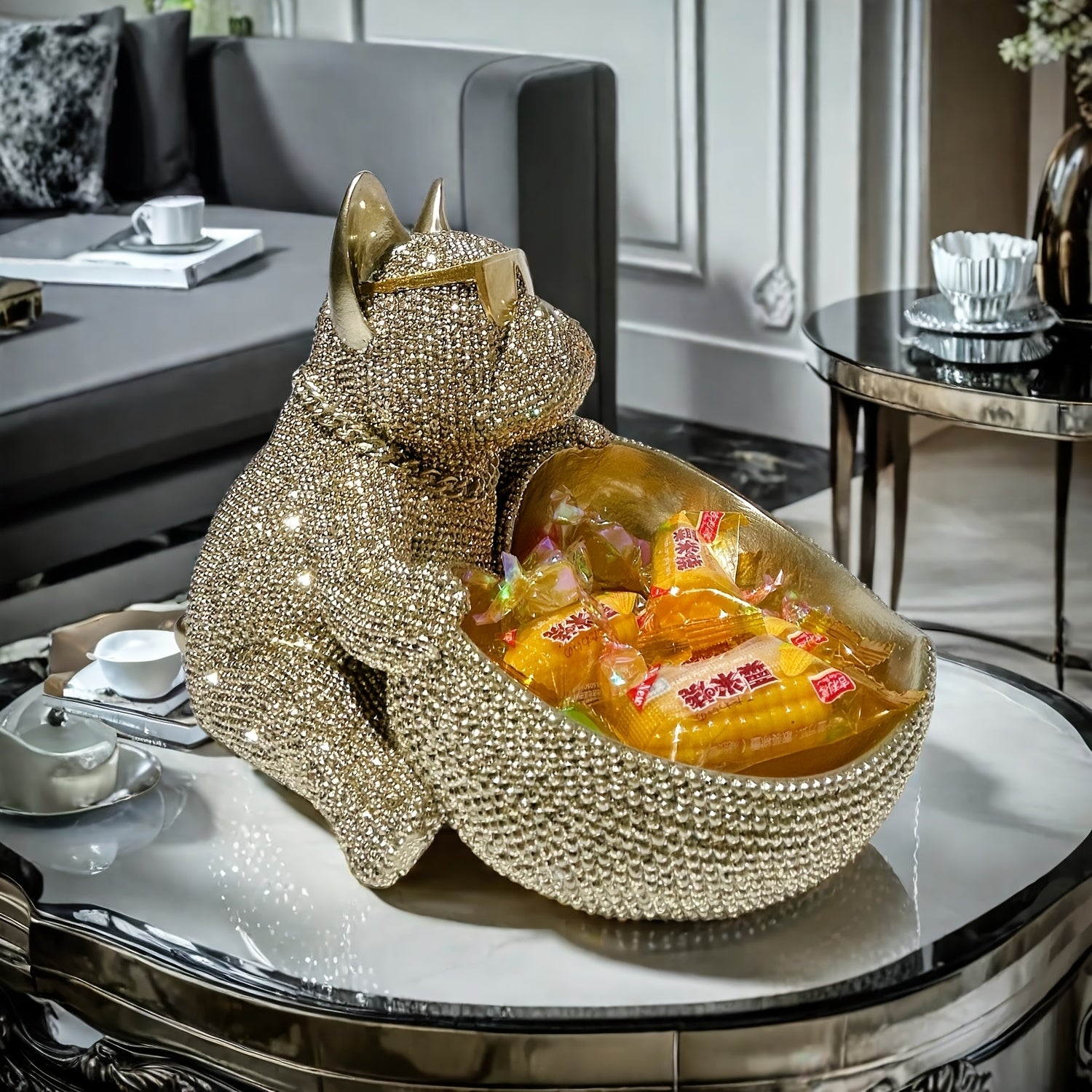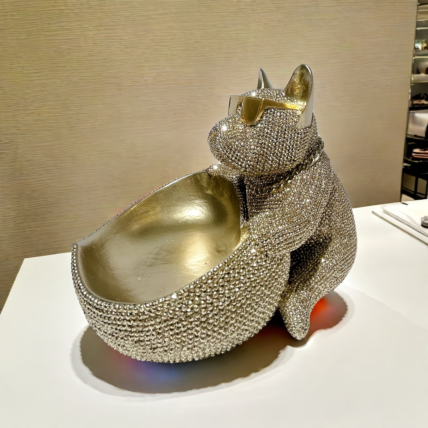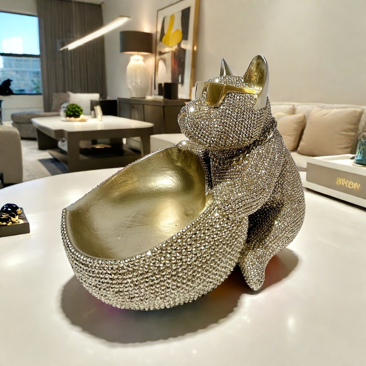O Porta Chaves Organizador Bulldog Casa Splendida une organização e presença estética em um único item. Com acabamento em champagne dourado e bandeja fixa, ele cria um “ponto de chegada” elegante para chaves e pequenos itens do dia a dia — do hall de entrada ao escritório.