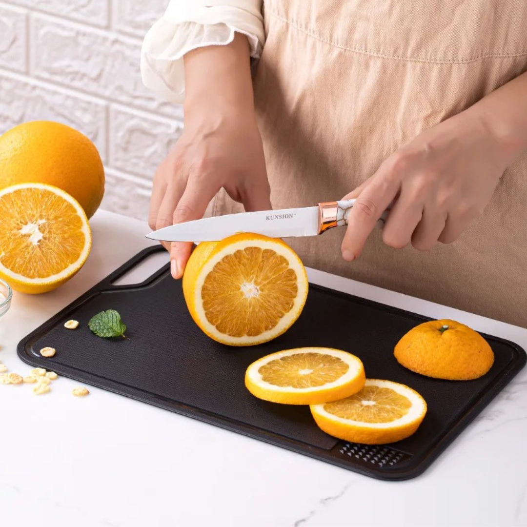 • ✔️ Dupla Face: Use os dois lados da tábua para separar tipos de alimentos e evitar contaminação cruzada.