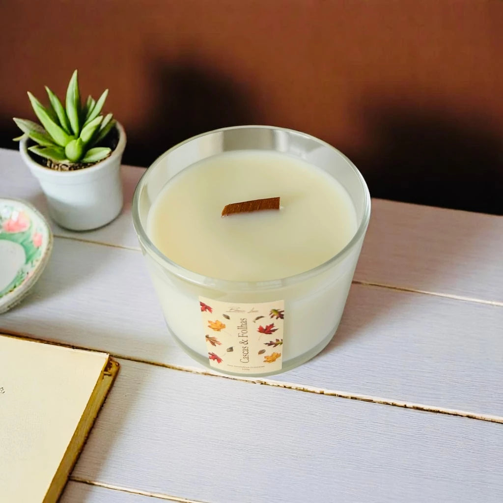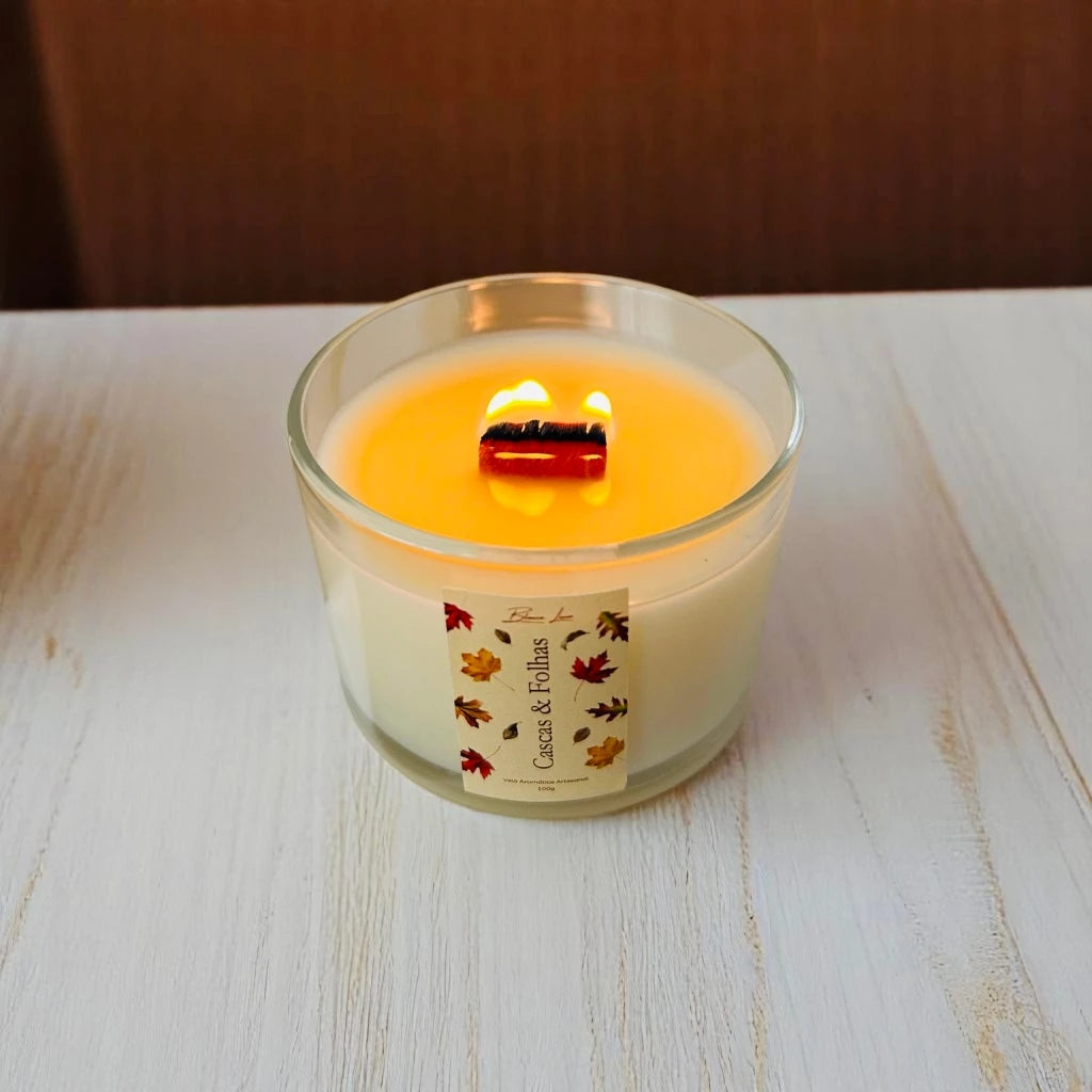 Transforme seu ambiente em um refúgio íntimo e reconfortante com a Vela Aromática Cascas e Folhas com Pavio de Madeira. Uma viagem olfativa pela natureza, onde o conforto mora nos detalhes — com a sensação de folhas secas ao sol, madeira aquecida e a brisa suave que atravessa as árvores no fim da tarde.
