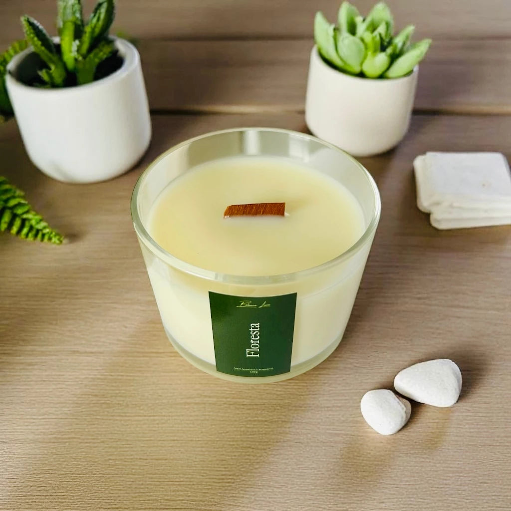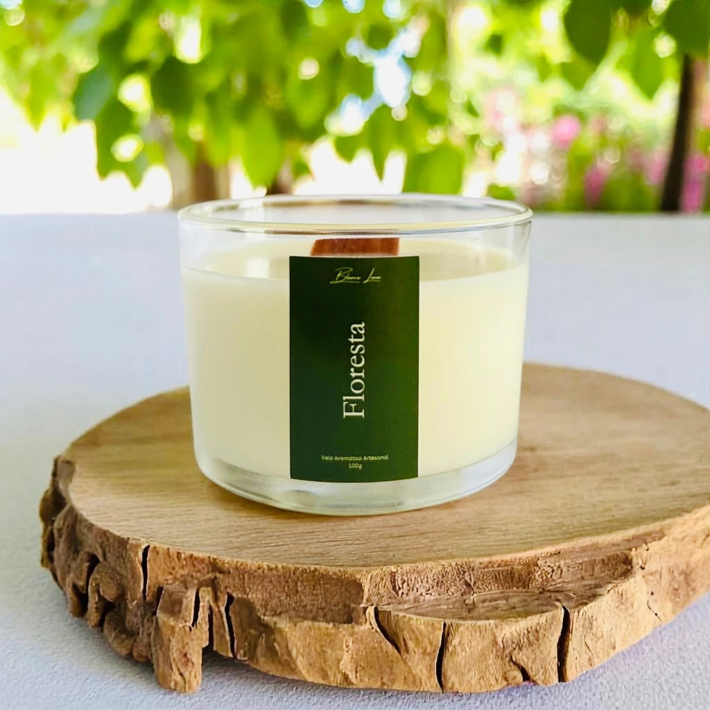 Transforme seu ambiente em um refúgio verde de calma e presença com a Vela Aromática Floresta com Pavio de Madeira. Um aroma fresco, herbal e levemente terroso que evoca a sensação de caminhar por uma trilha úmida — entre folhas, raízes e o silêncio vivo da mata.