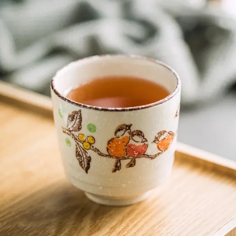 Xícara japonesa cerâmica pintada à mão estampa Pássaros